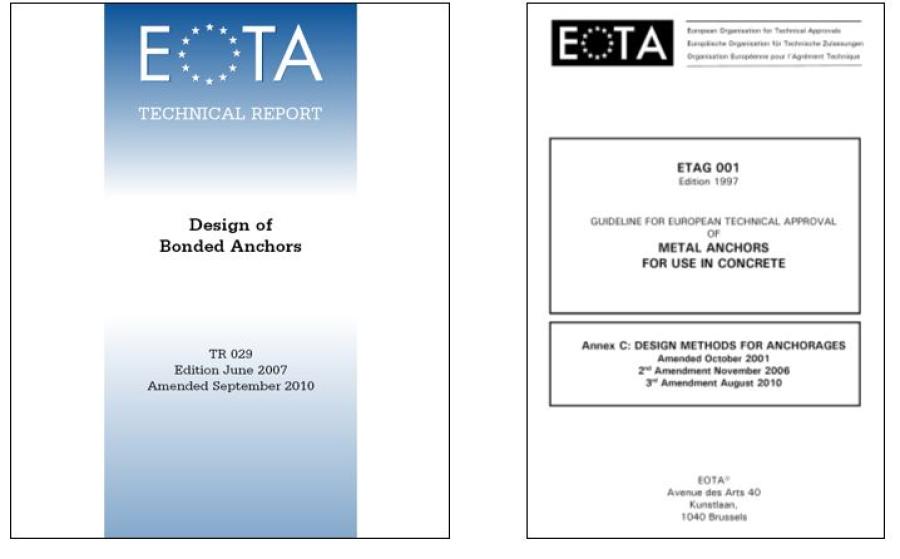- ETAG001 ANNEX C: Progettazione e verifica di ancoranti meccanici post-installati in calcestruzzo;