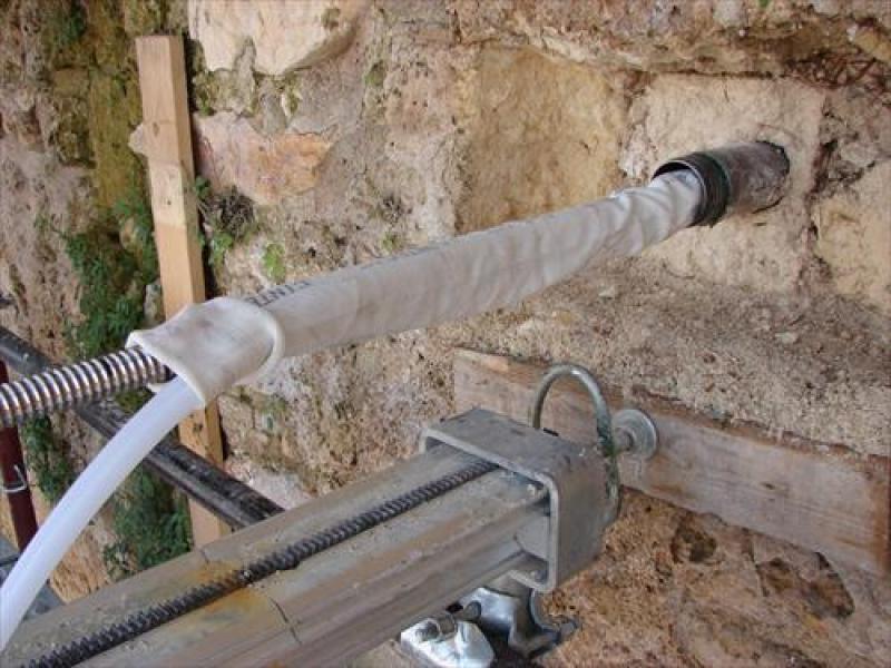 ANCORAGGI > mod. GBOS 24-70 P costituito da barra tipo GBOS 24/304 in acciaio inossidabile AISI 304 con filettatura continua su tutta la lunghezza, completa di calza per il controllo dell’iniezione della malta, appositi tubicini di iniezione, connessioni (manicotti di giunzione) in acciaio inossidabile AISI 316 (A4) e malta Presstec specifica per iniezioni con calza