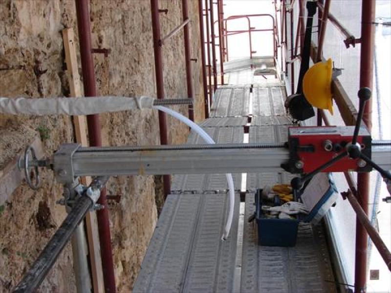 - perforazioni orizzontali realizzate con carotatrici con sonda diamantata con funzionamento a sola rotazione - lunghezza 10 m.