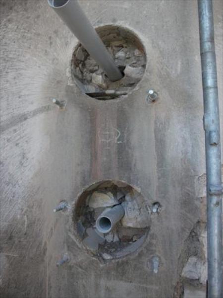 - perforazioni orizzontali realizzate con carotatrici con sonda diamantata con funzionamento a sola rotazione - lunghezza da 10,50m a 14,20m.